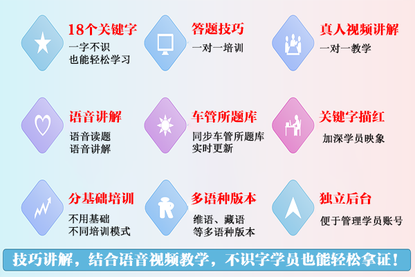 車龍頭交規(guī)是一款專業(yè)的文盲駕考理論速成軟件,采用技巧培訓(xùn)學(xué)員,只要學(xué)員記住18個(gè)核心關(guān)鍵字。不管學(xué)員識不識字,記性好不好,都能輕松培訓(xùn)學(xué)員通過科一科四理論考試。技巧簡單,軟件題庫全,可快速培訓(xùn)學(xué)員。 軟件試用 →